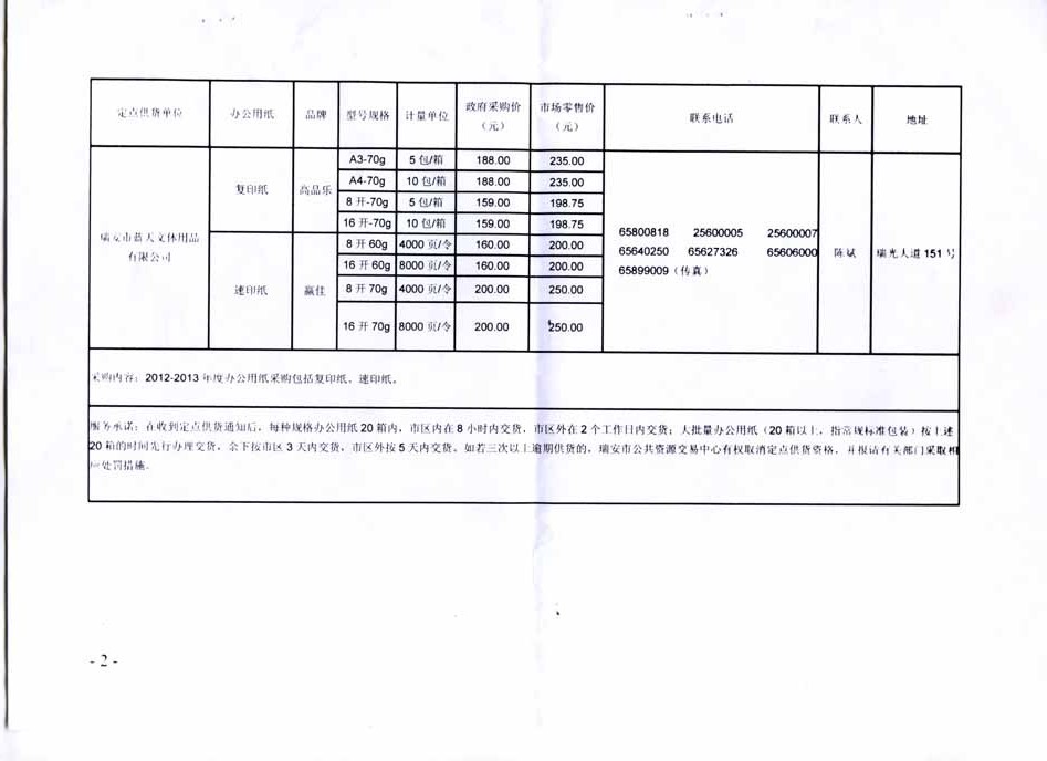 关于公布我市2012年行政事业单位办公用纸采购结果的通知